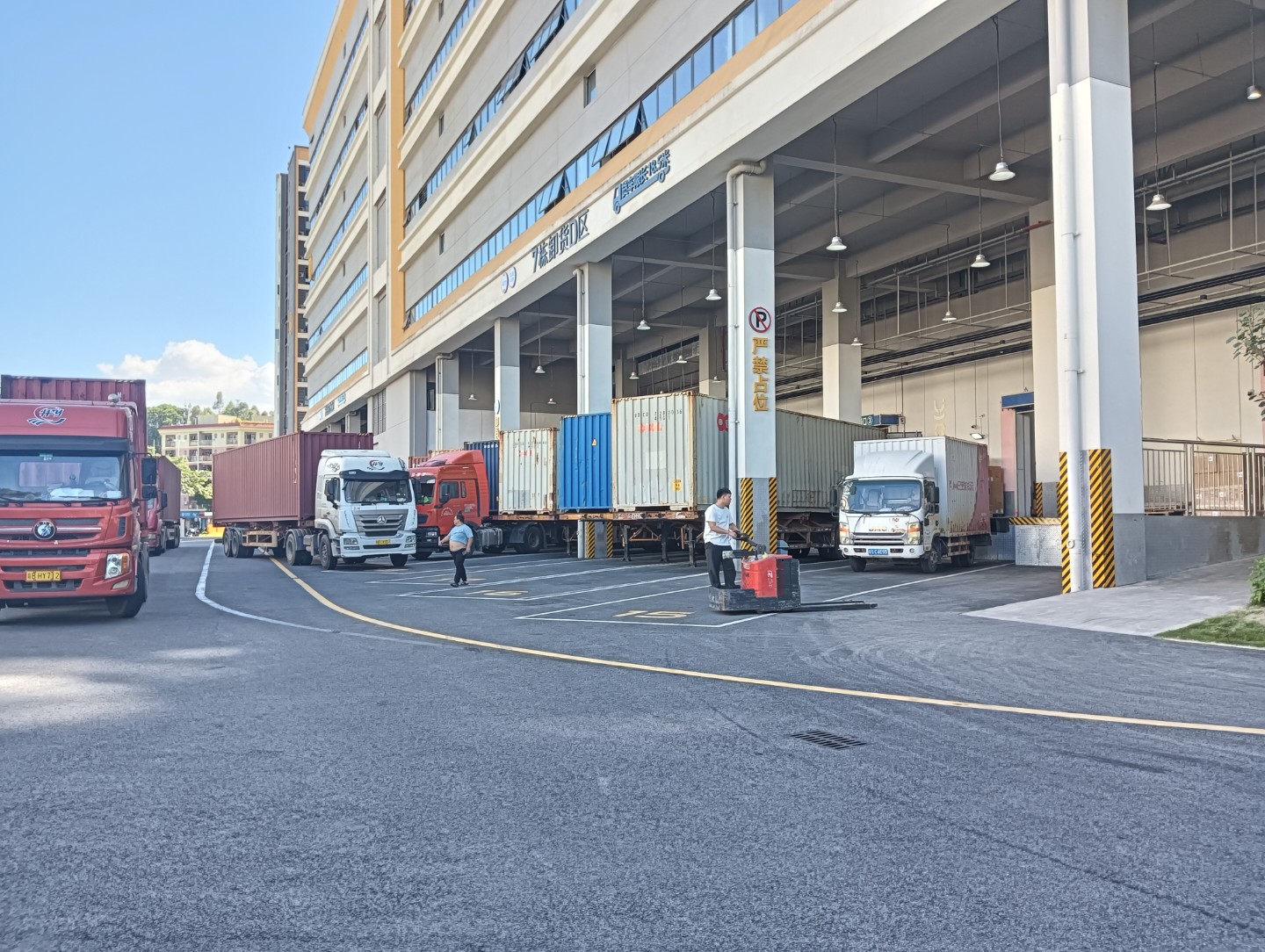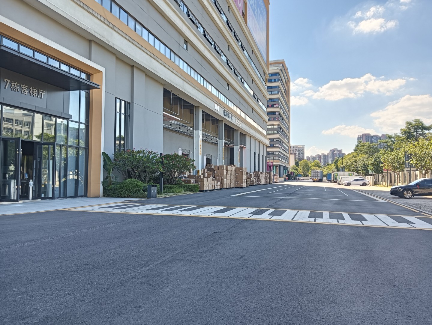 凤岗黄洞东深二线边,原房东高新产业园7号楼带标准卸货平台,二十三部自动升降机,单层面积11000平层高6米,承重每平方一吨,标配十四部3-5吨货梯两部客梯,空地超大停车位充足