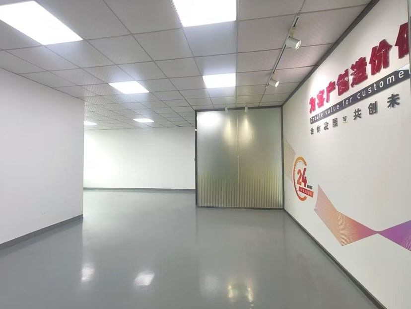 沙井原房东大型工业园区楼上整层1000平方,豪华精装修厂房,水电齐全,采光好,合同五年,格局方正。
